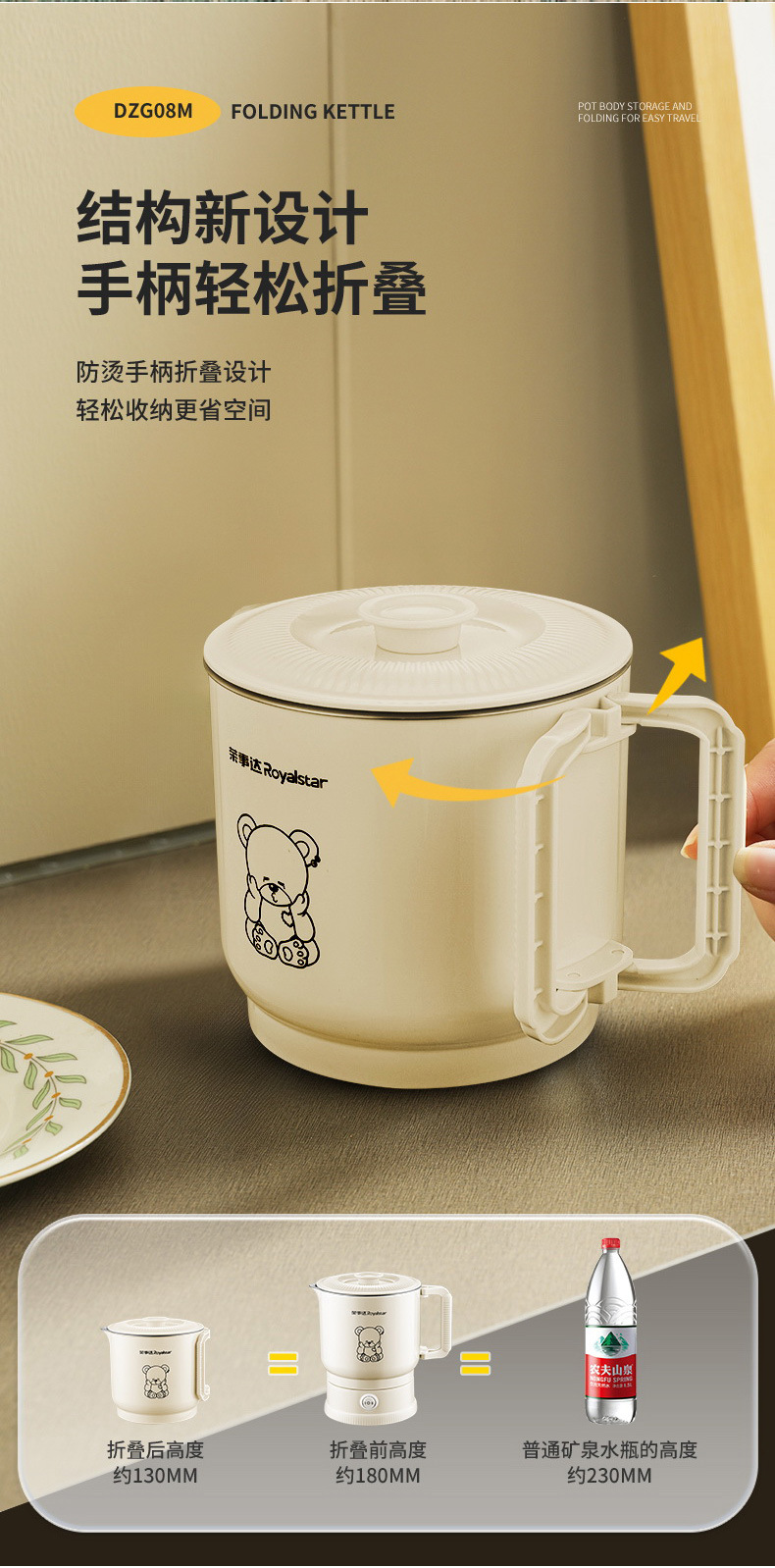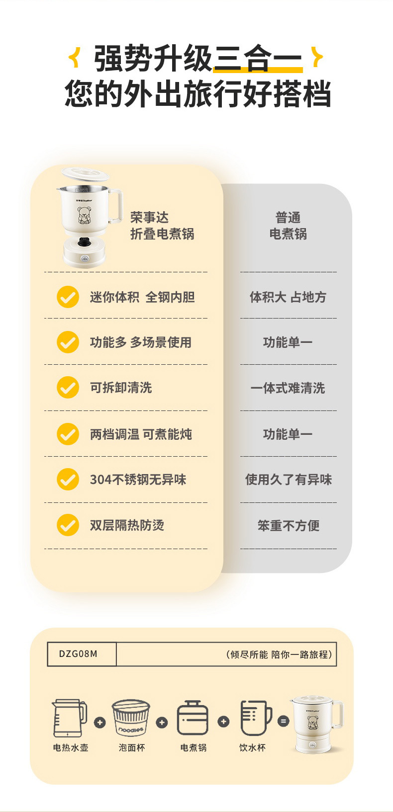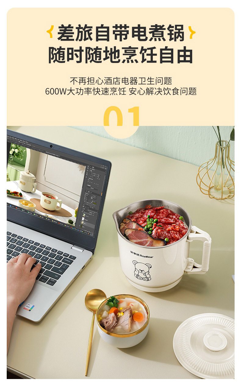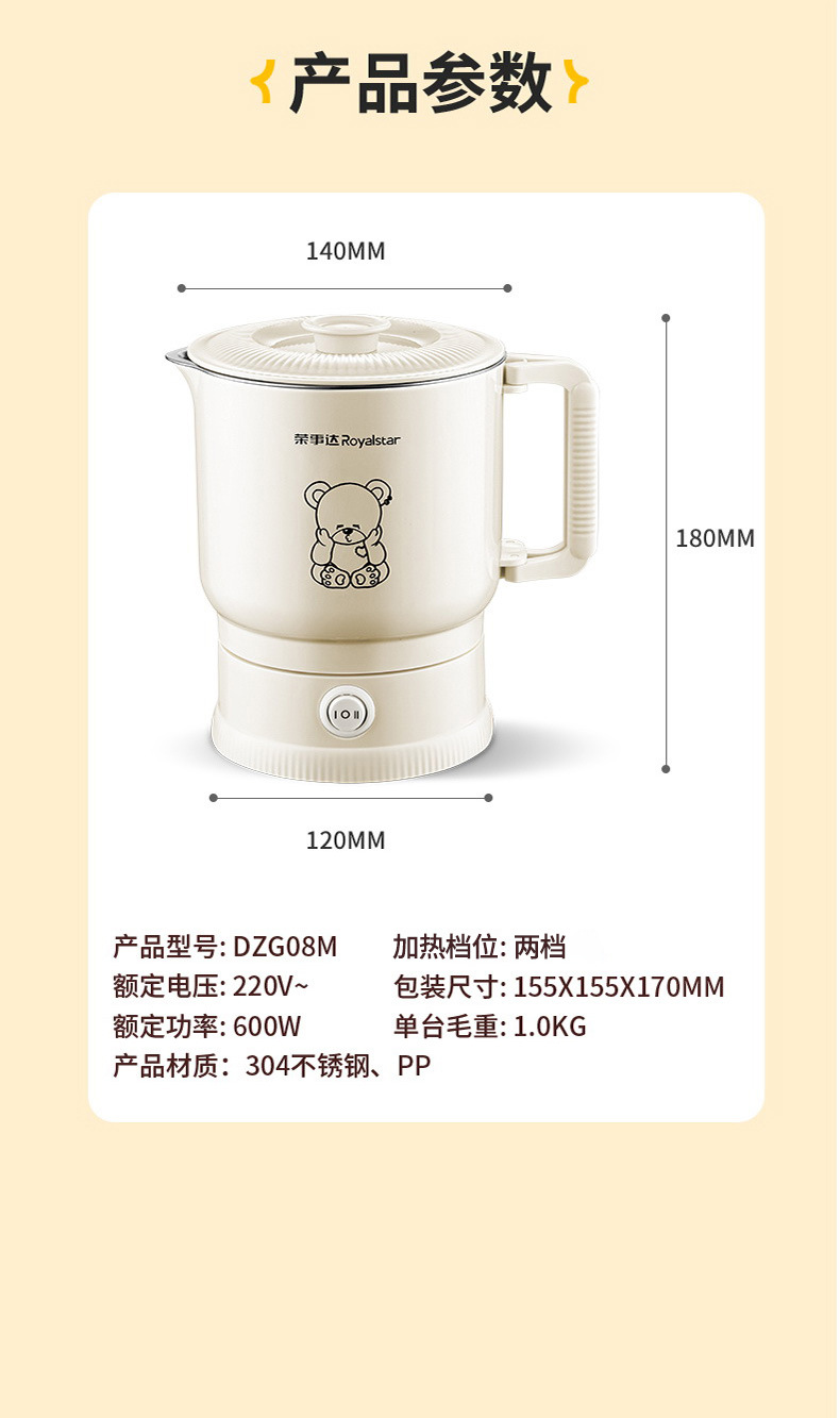 荣事达电煮锅折叠分体式多功能宿舍锅小型泡面锅便携一人食小电锅