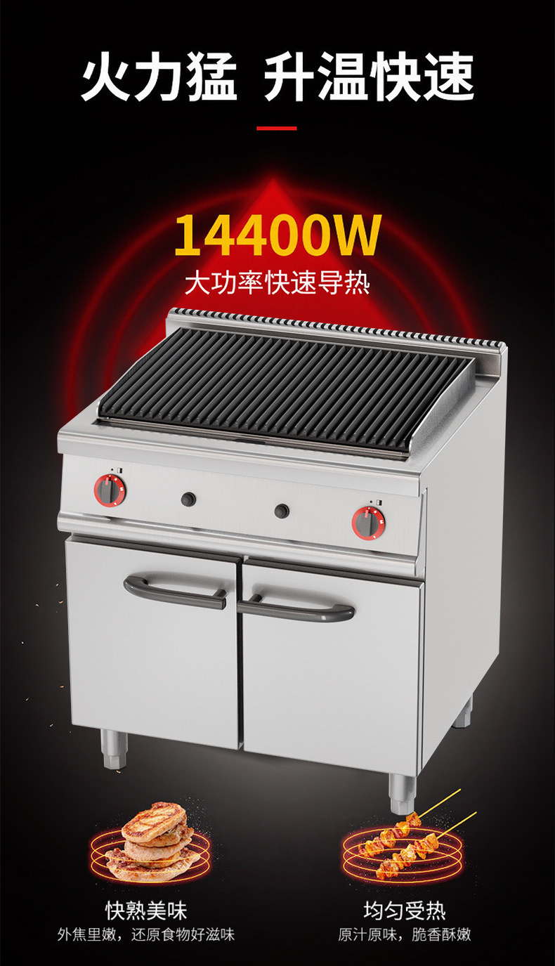 千麦立式扒炉1/3坑电热燃气全平扒炉连柜座连焗炉商用小吃铁板烧