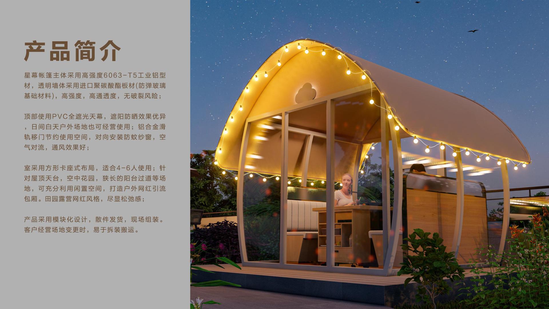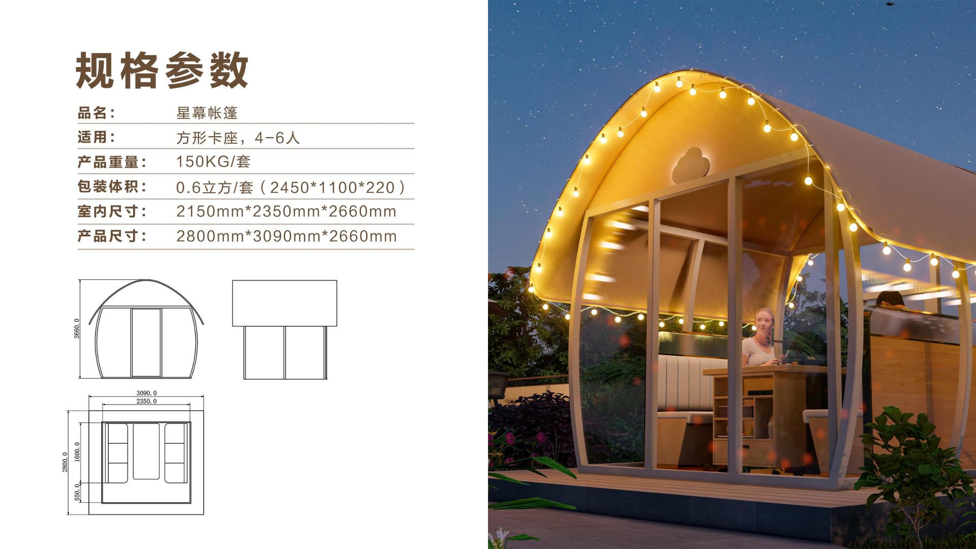 星幕帐篷户外度假田园露营风格方形卡座包间火锅烧烤餐厅野营星空