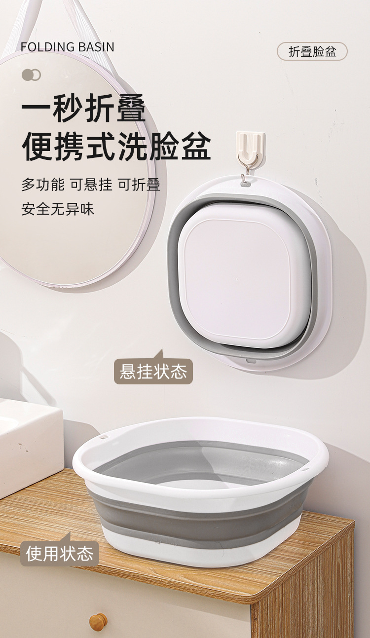 便携式硅胶可折叠洗脸盆洗菜盆学生宿舍塑料泡脚洗脚盆多用盆