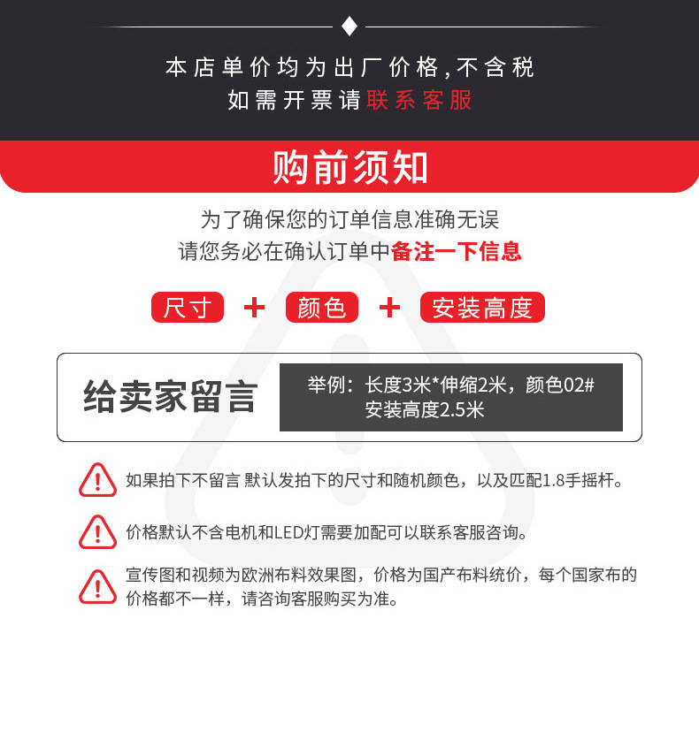 外贸出口款可伸出5米重型大尺寸伸缩遮阳篷雨棚户外商用屋檐遮阳