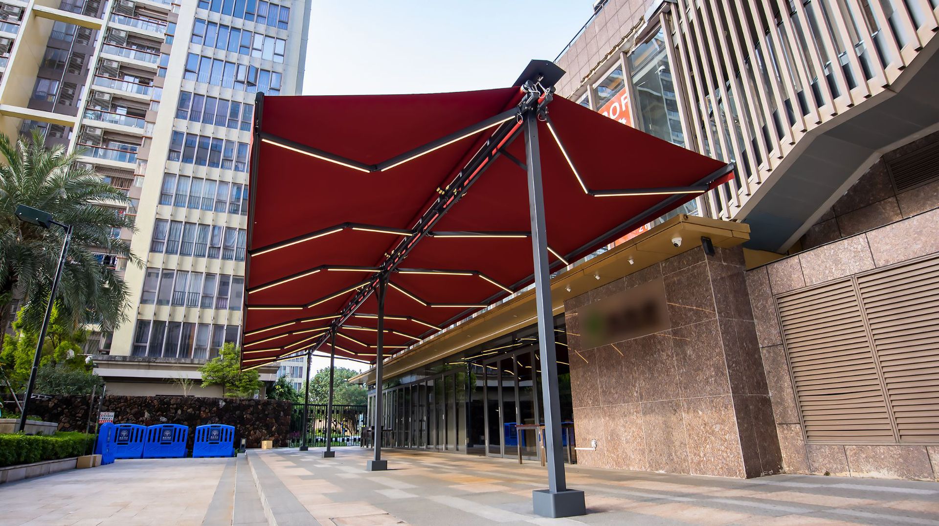 双面开合电动伸缩遮阳蓬雨棚大面积户外商用景点雨蓬可移动遮阳棚