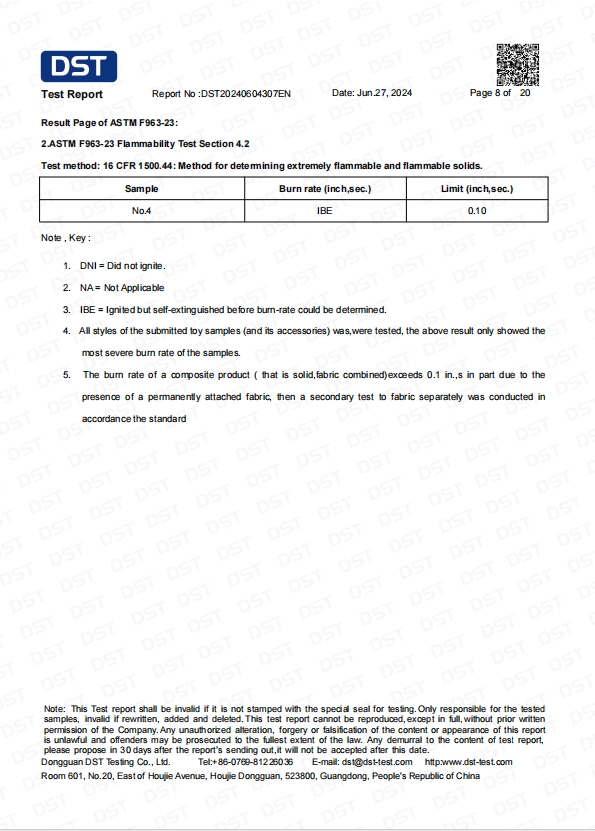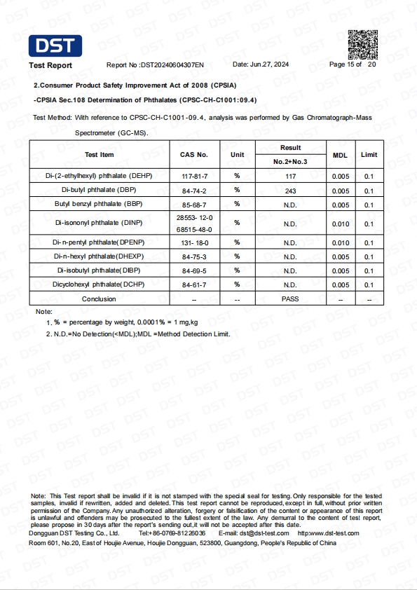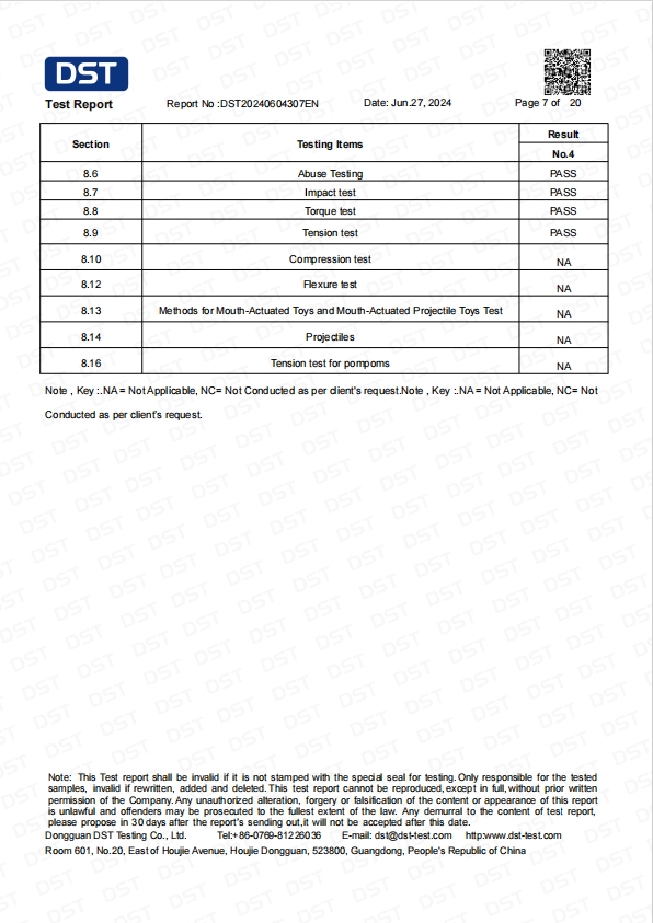 跨境产品检测报告 | DST20240604307EN | 查看证书 | |