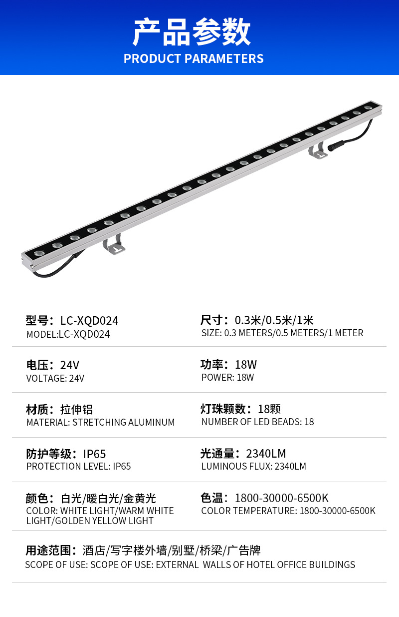 工厂批发24V户外防水led洗墙灯婚庆射灯室外招牌外墙桥梁亮化照明