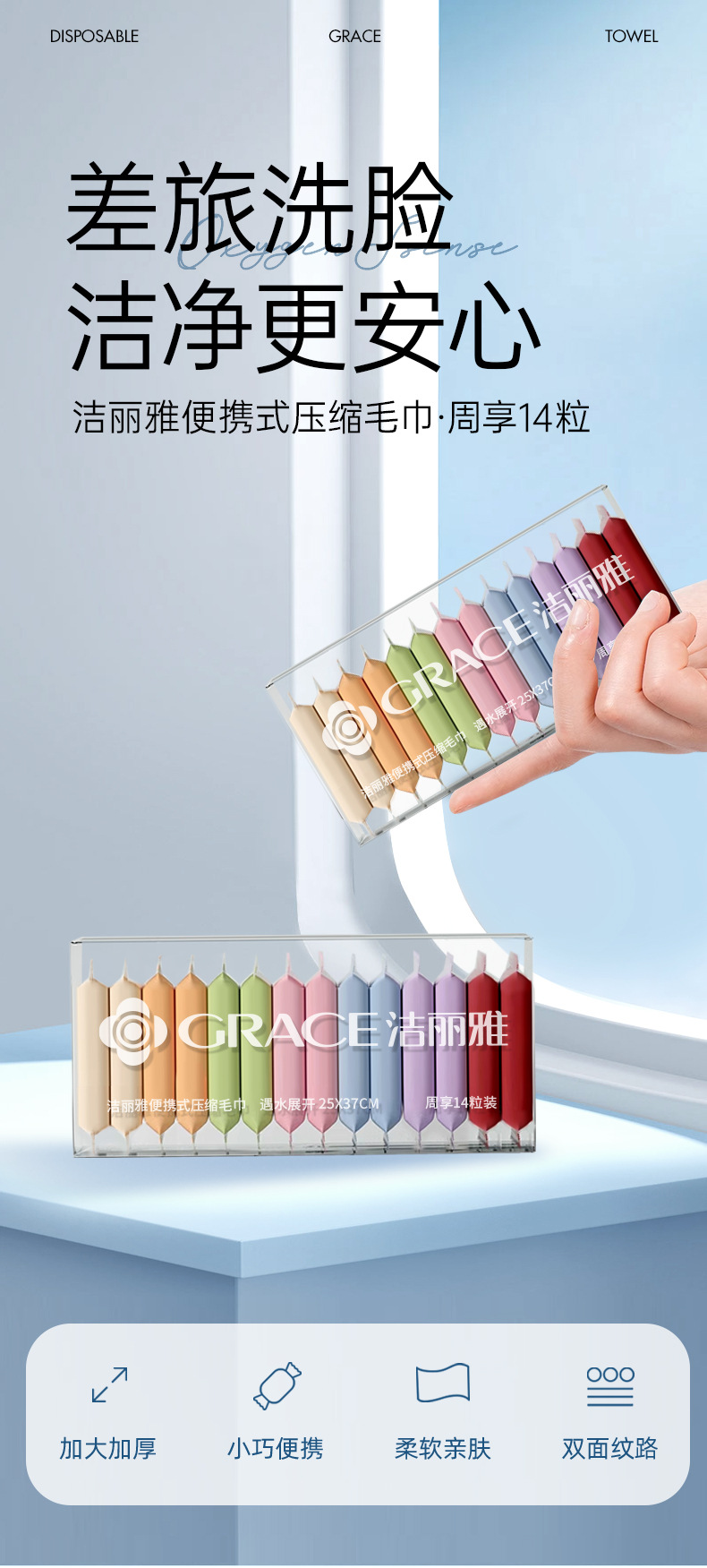 洁丽雅一次性压缩毛巾洗脸巾洁面巾独立装便携旅行装备MRJ770加厚