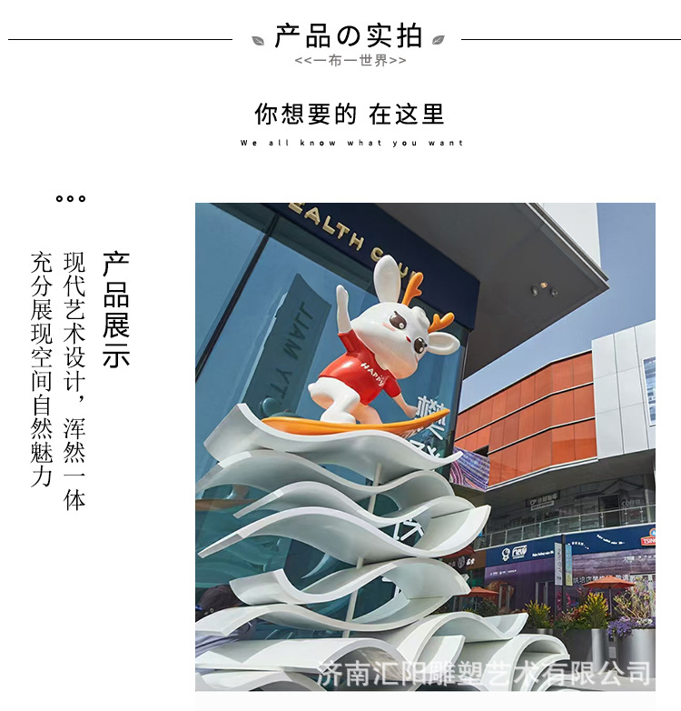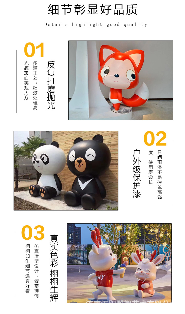 玻璃钢雕塑定制商场卡通IP公仔摆件大型园林景观动物校园广场厂家