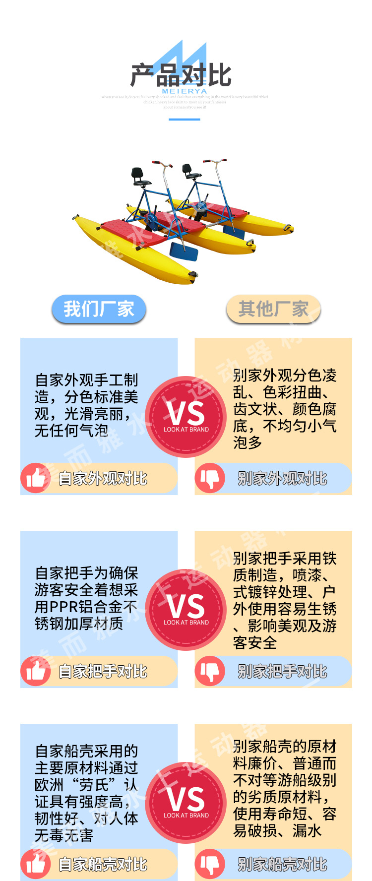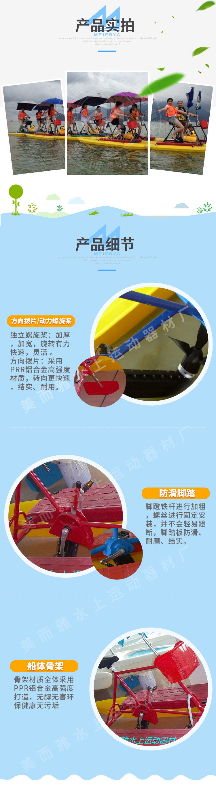 美而雅厂家直销水上景区休闲运动三轮车公园湖泊娱乐单车游乐设备