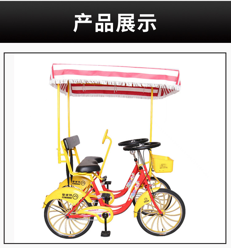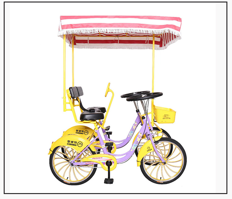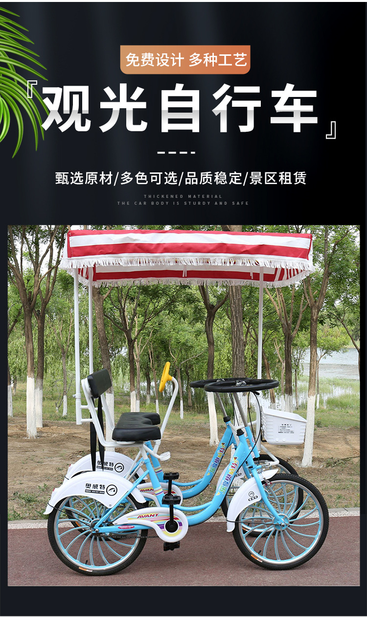 奥威特公园旅游景区车共享自行车扫码骑行观光脚踏车联排双人车