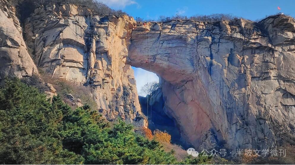 注:天门山位于北京市密云区密云水库西侧,属燕山山脉。核心景观天门洞形成于1.2亿年前,海拔800余米,洞高60米、宽40米,是华北地区最大穿山岩洞,因形似城门被誉为“北天门山”,衍生“日出天门”“天门悬月”等罕见天文奇观。