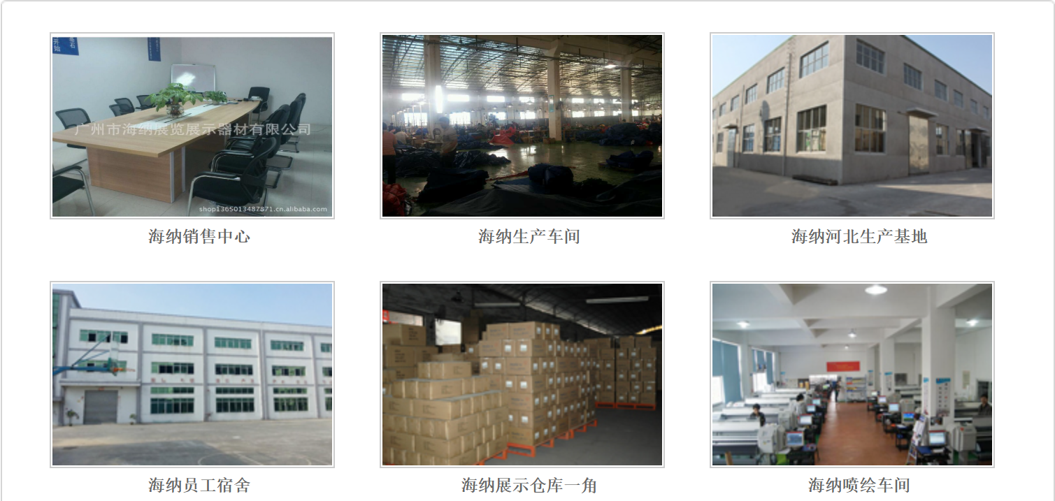 广州市海纳展览展示器材有限公司始创于2000年,公司主营广告展示器材(易拉宝、促销台、展架、拉网等等)的生产销售和快幕秀、速展的定制生产以及高精度数码热转印和喷绘写真等业务,为方便客户和响应广告行业终端展示快速要求,海纳展示在南北方设立大型工厂和配送制作中心,我们以“为中国品牌终端展示加油”的服务理念,长期战斗于国内大型知名品牌的终端展示促销服务的第一线(如:王老吉、中国移动、泸州老窖、珀莱雅、东风汽车等等)。海纳展示通过10多年的行业沉淀,产品不断推陈出新,我们以“越来越好、越来越巧”的设计生产理念,让客户的品牌在终端展示中迅速脱颖而出,我们也立争致力于为客户提供品牌终端展示一站式服务,用我们优质的产品、优秀的服务、优惠的价格让客户省心、省力、省时、省钱。