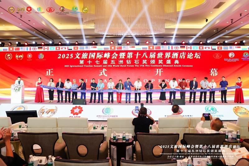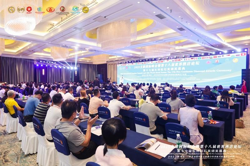 7月24日至25日,“2025文旅国际峰会暨第十八届世界酒店论坛”及“第十七届五洲钻石奖颁奖盛典”在海口鲁能希尔顿酒店成功举办。活动吸引了来自中国、美国、法国、意大利、德国、柬埔寨等十余个国家和地区的约400位文旅及酒店行业领袖、企业家代表参会,其中世界华人协会、世界杰出女性领袖联盟组织的60位东南亚企业家及行业协会代表尤为瞩目。